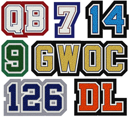 DeLong offers the best quality chenille Numbers, Positions and Weight Classes.